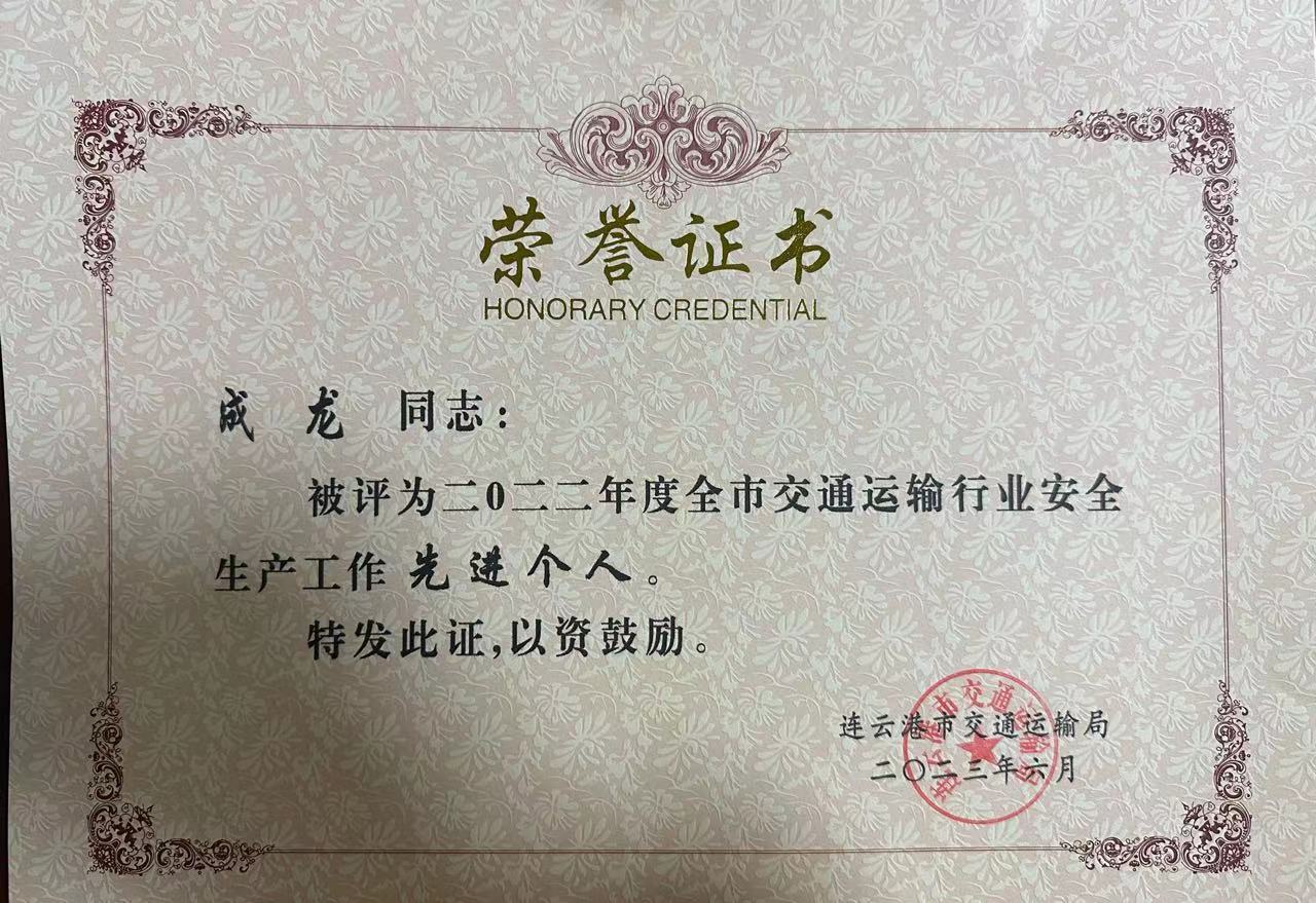 日前,《關(guān)于表彰2022年度全市交通運(yùn)輸行業(yè)安全生產(chǎn)工作先進(jìn)單位、先進(jìn)集體和先進(jìn)個(gè)人的通報(bào)》,連汽出租公司獲得2022年度全市交通運(yùn)輸行業(yè)安全生產(chǎn)工作先進(jìn)單位,公司支部書記成龍同志被評為2022年度全市交通運(yùn)輸行業(yè)安全生產(chǎn)工作先進(jìn)個(gè)人榮譽(yù)稱號。