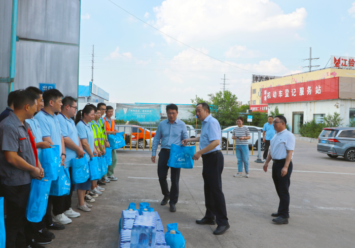 活動(dòng)現(xiàn)場,集團(tuán)領(lǐng)導(dǎo)親自將綠豆、水、香皂、毛巾、花露水等防暑降溫物資送到員工手中,并與員工們親切交談,對他們在高溫下堅(jiān)守崗位、辛勤付出表示衷心的感謝和崇高的敬意。同時(shí),集團(tuán)領(lǐng)導(dǎo)還詳細(xì)詢問了員工們的工作和生活情況,叮囑大家在高溫天氣下要注意勞逸結(jié)合,做好防暑降溫措施,確保自身的安全和健康。