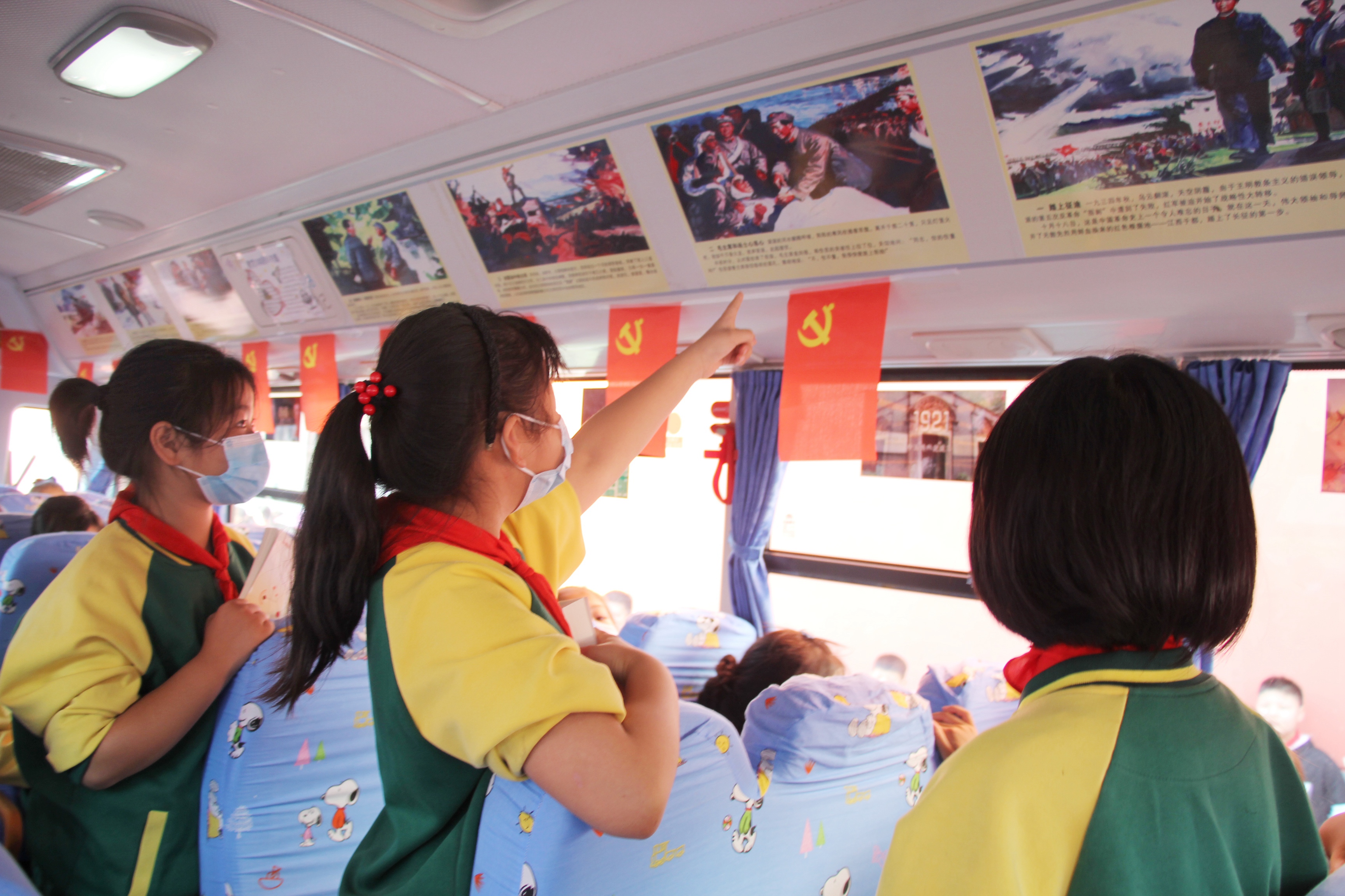 在黨史教育示范車廂內(nèi),一幅幅主題鮮明、引人入勝的宣傳展板呈現(xiàn)在孩子們面前,內(nèi)容從中國共產(chǎn)黨誕生到新中國成立重大活動、重大戰(zhàn)役,黨的一大到十九大的光輝歷程,從紅船精神、井岡山精神到延安精神,圖文并茂地展示了中國共產(chǎn)黨的百年革命歷史,孩子們在乘車途中便可耳濡目染中國共產(chǎn)黨黨史。