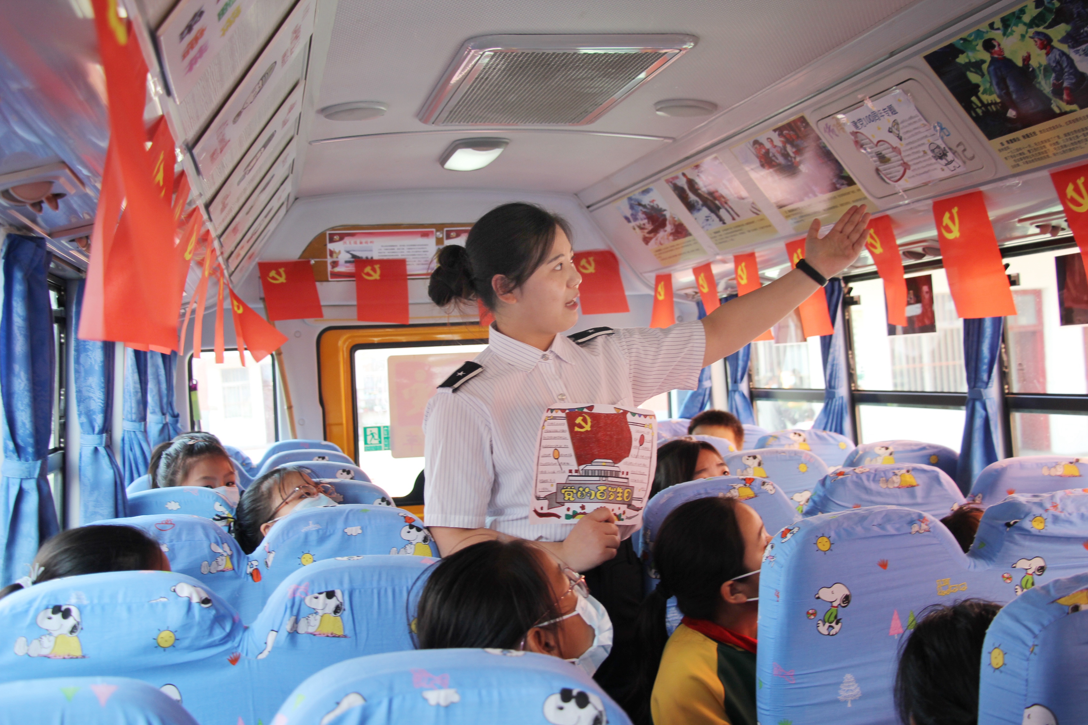 為了進一步推進校車主題車廂的建設(shè),連汽灌云欣達校車在沂北中心小學打造蘇GV7359黨史教育示范車,學生在乘車上下學過程中,一邊乘坐校車一邊聽照管員講解黨史知識,照管員細致的講解讓孩子們對黨史學習產(chǎn)生了濃烈的興趣。