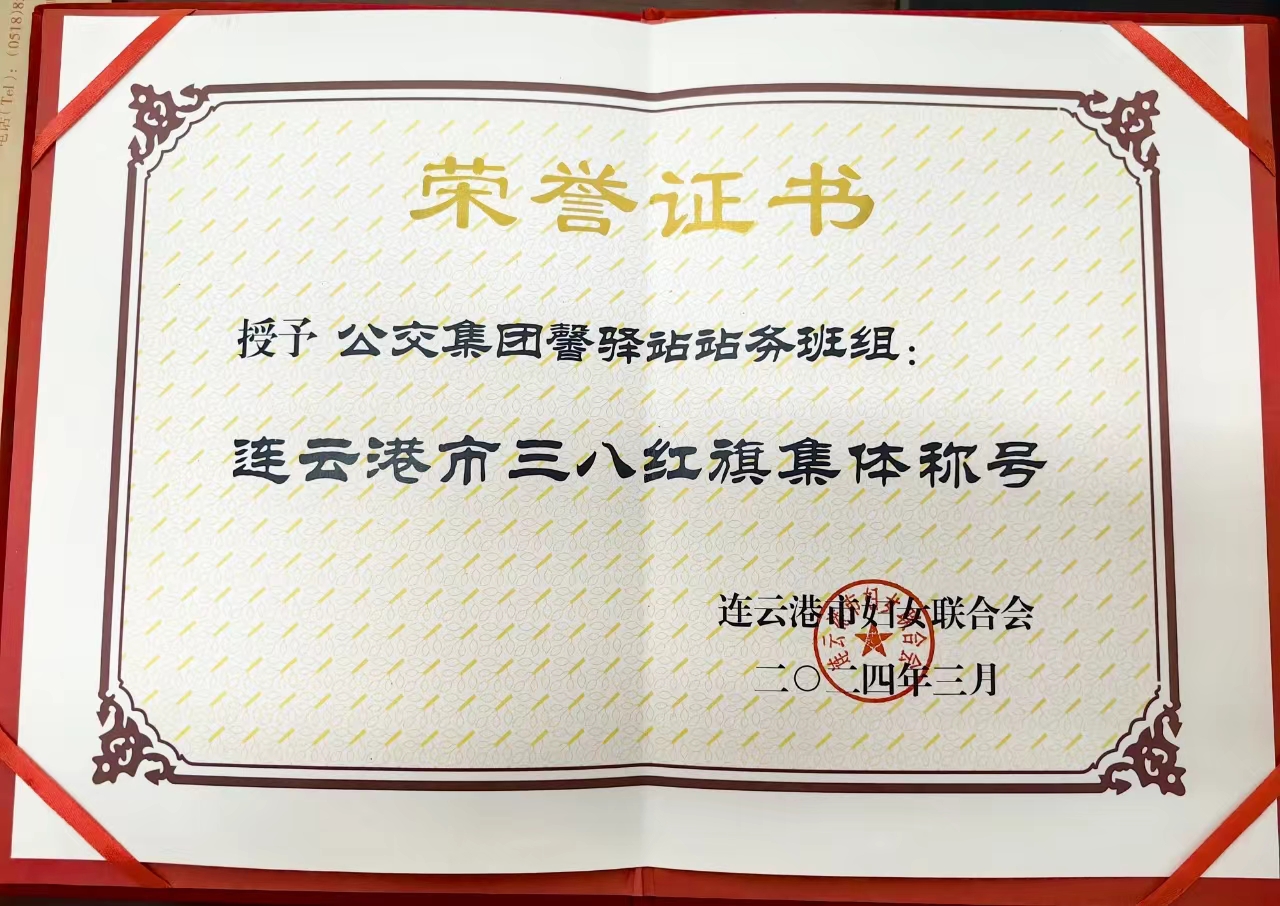 為增強女職工群體的榮譽感和成就感,進一步發(fā)揮女職工“半邊天”作用,近日,經(jīng)過上級層層評選,公交集團快速公交事業(yè)部“馨驛站”站務(wù)班組榮獲“連云港市三八紅旗集體”稱號。