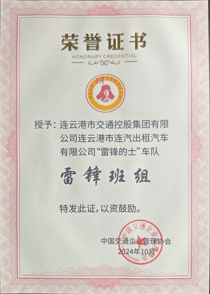 11月6日,從中國(guó)交通企業(yè)管理協(xié)會(huì)傳來(lái)喜訊,連云港市交通控股集團(tuán)汽服公司出租汽車事業(yè)部“雷鋒的士”車隊(duì)喜獲“雷鋒班組”稱號(hào),這一殊榮不僅是對(duì)“雷鋒的士”車隊(duì)長(zhǎng)期以來(lái)堅(jiān)持優(yōu)質(zhì)服務(wù)和無(wú)私奉獻(xiàn)精神的肯定,也是對(duì)整個(gè)出租汽車行業(yè)樹(shù)立新風(fēng)尚、展現(xiàn)新形象的有力鼓舞。