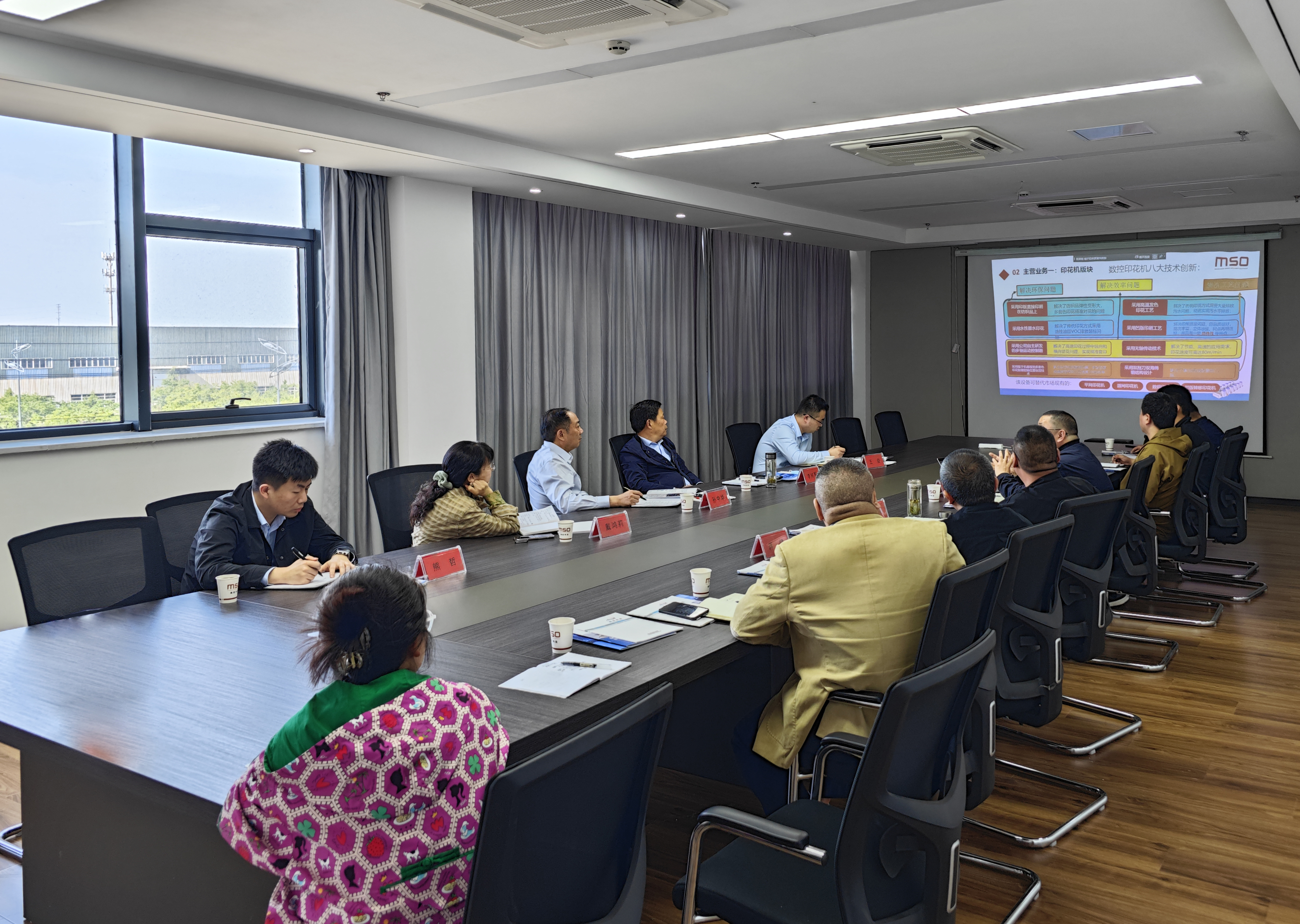 孫中華一行實(shí)地參觀了MSO高速凹版印花成套設(shè)備、智能移動(dòng)機(jī)器人等生產(chǎn)車間,深入了解公司發(fā)展歷史沿革、研發(fā)成果、技術(shù)應(yīng)用及上市規(guī)劃等情況;海宏科技公司負(fù)責(zé)人圍繞公司三大業(yè)務(wù)板塊、兩大發(fā)展定位、技術(shù)優(yōu)勢(shì)以及后續(xù)發(fā)展計(jì)劃作了詳細(xì)匯報(bào)。