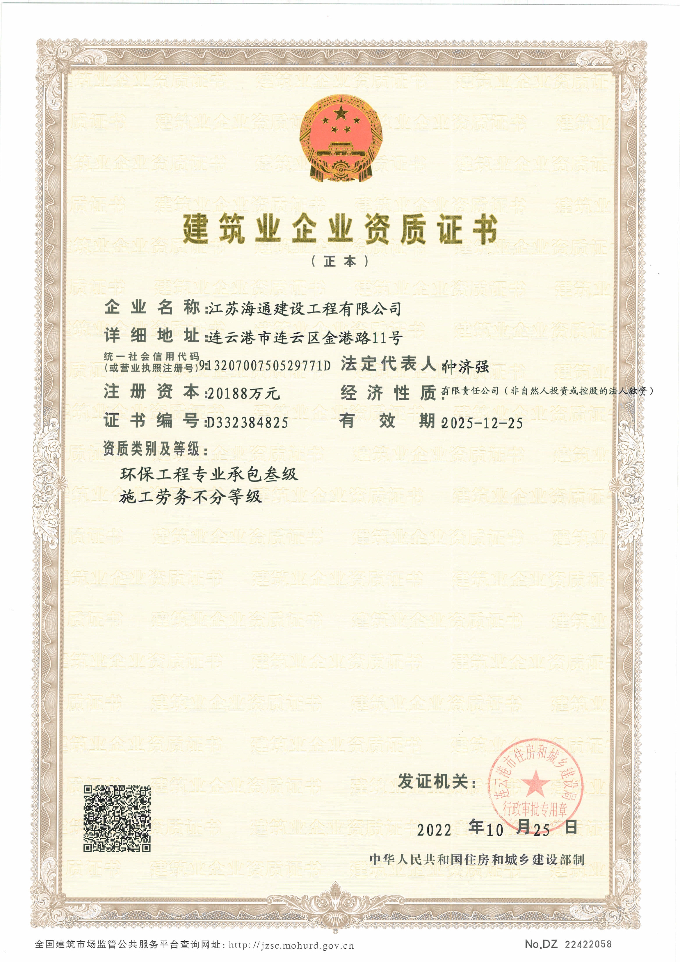 近日,江蘇海建公司資質(zhì)申報工作再傳喜訊,經(jīng)連云港市住房和城鄉(xiāng)建設(shè)局嚴格審核后批準通過,海建公司成功增項“施工勞務(wù)分包不分等級”資質(zhì)。