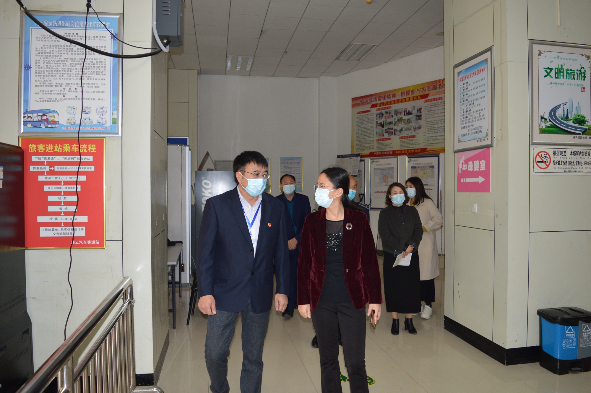 11月11日,灌云縣縣長(zhǎng)曹明麗一行到連汽灌云客運(yùn)站檢查創(chuàng)文工作和疫情防控工作,縣相關(guān)部門(mén)負(fù)責(zé)人參加檢查。