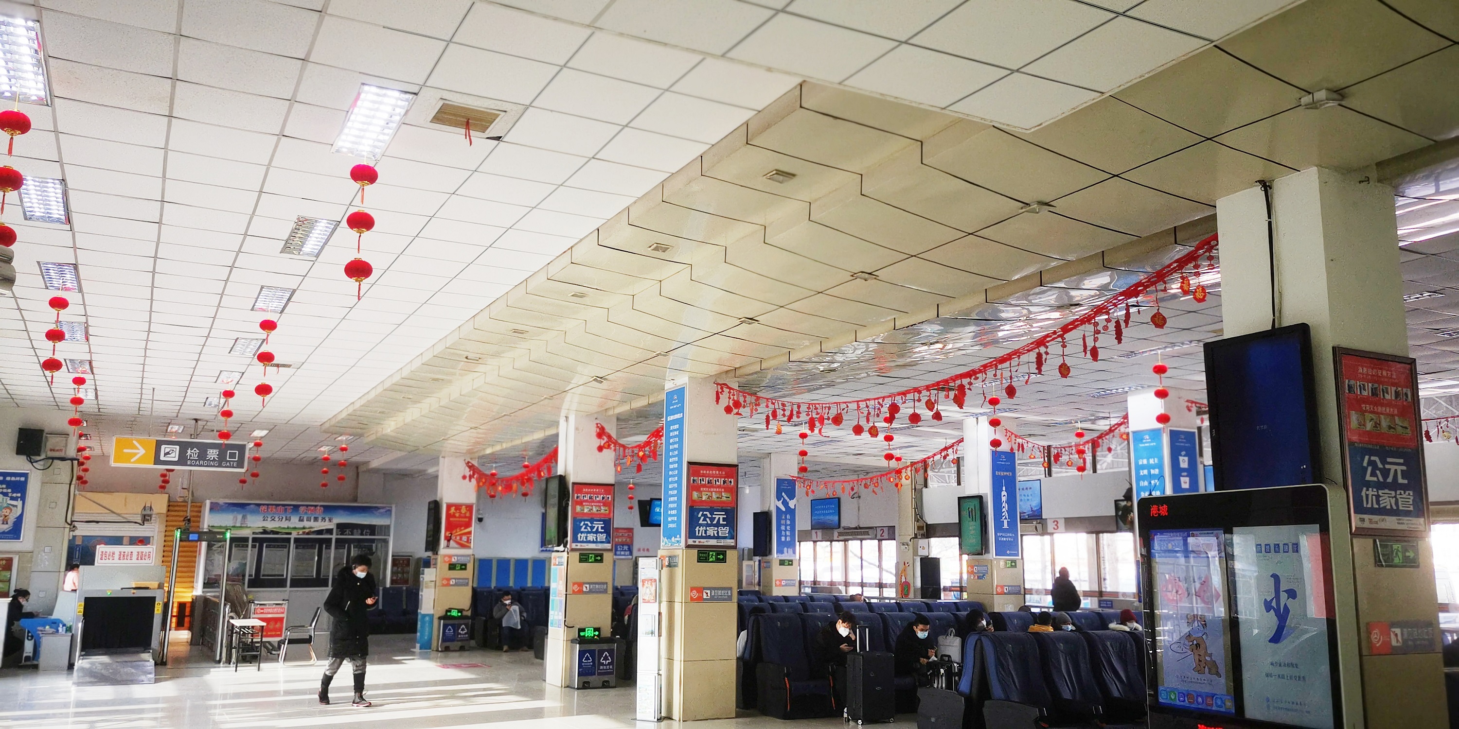 一盞盞火紅燈籠高高懸掛,隨處可見關(guān)于新歲的紅色,是年味在向新春招手。進(jìn)站大廳內(nèi)的新春交通海報,站場通道玻璃上的祥云貼花,出站口的春節(jié)祝福語,雷鋒車驛站的新春布置等各式各樣的迎春裝飾,打造了充滿年味的幸??臻g。