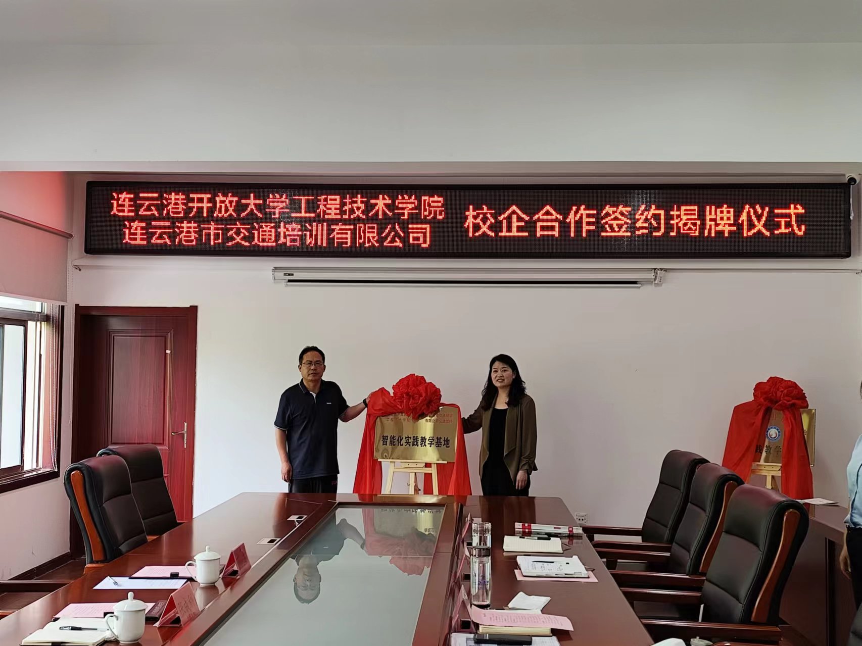 近日,交培公司與連云港開放大學(xué)工程技術(shù)學(xué)院就駕駛技能培訓(xùn)、校外智能化培訓(xùn)基地等項(xiàng)目簽訂校企合作協(xié)議,并舉行簽約和揭牌儀式。連云港開放大學(xué)工程技術(shù)學(xué)院院長(zhǎng)張成利一行,交培公司黨委書記、總經(jīng)理李霞,副總經(jīng)理曹曉樂(lè)及駕培事業(yè)部相關(guān)負(fù)責(zé)同志出席,李霞代表公司進(jìn)行簽約并揭牌。