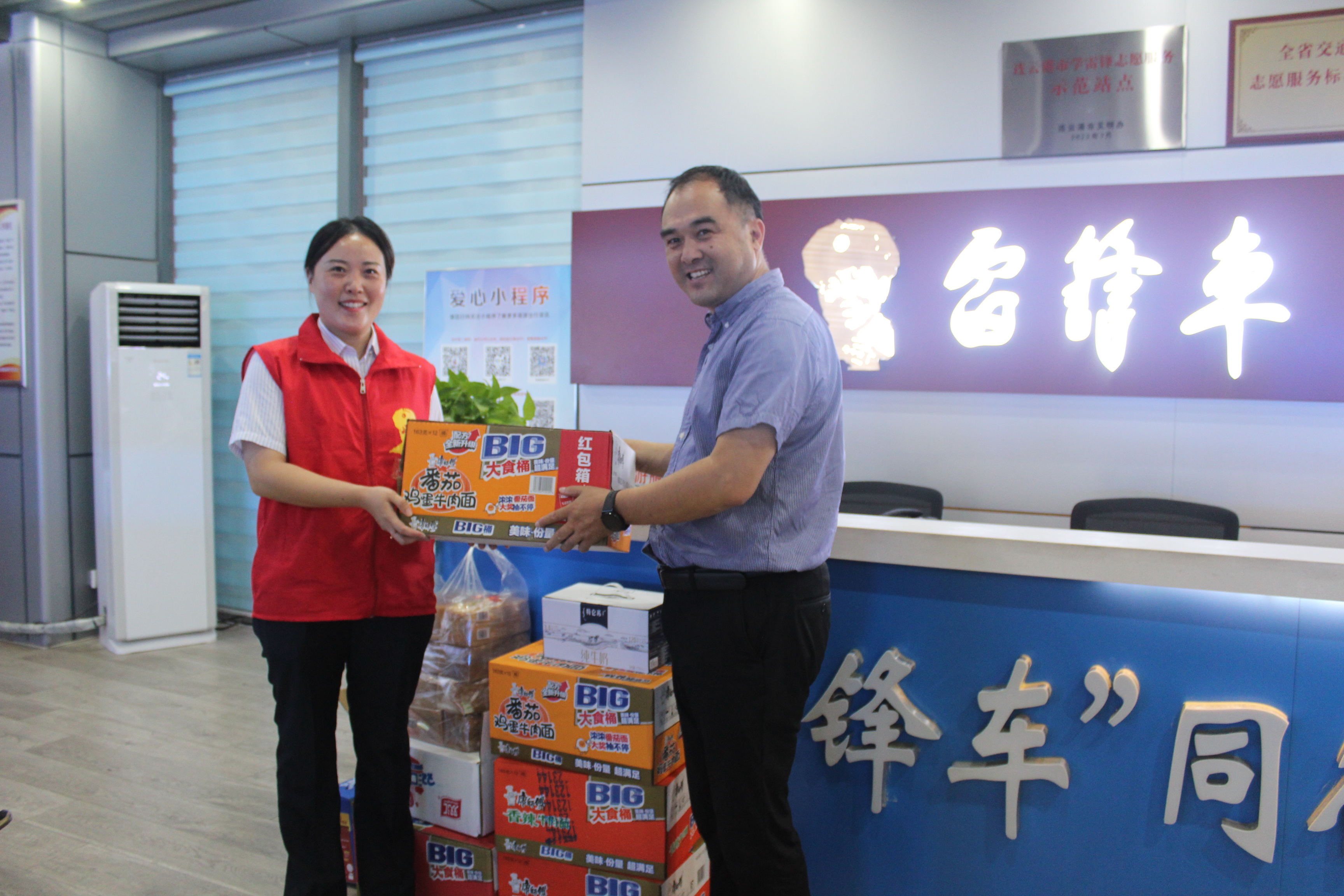 9月28日,在連云港市高鐵站“雷鋒車”驛站前,一抹抹“志愿紅”隨處可見,她們?yōu)榧磳⒌絹淼募偃湛土鞲叻遄龊昧藴?zhǔn)備。汽車公司工會(huì)為堅(jiān)守在“雷鋒車”驛站的“雷鋒車”手們送上面包、牛奶等慰問品,為他們送去節(jié)日慰問與祝福。為應(yīng)對(duì)客流高峰,中秋國慶假期“雷鋒車”手志愿者們要連續(xù)奮戰(zhàn)在高鐵站,開展旅客幫扶、交通指引、免費(fèi)接駁等工作。汽車公司副總經(jīng)理、工會(huì)主席張春軍表示:在連云港市“雙節(jié)”出行客流高峰,“雷鋒車”手們堅(jiān)守崗位,無私奉獻(xiàn),不折不扣地落實(shí)公司的決策與部署,以群眾所需為己任,溫暖旅客回家路,展現(xiàn)了新時(shí)代“雷鋒車”手的風(fēng)采。