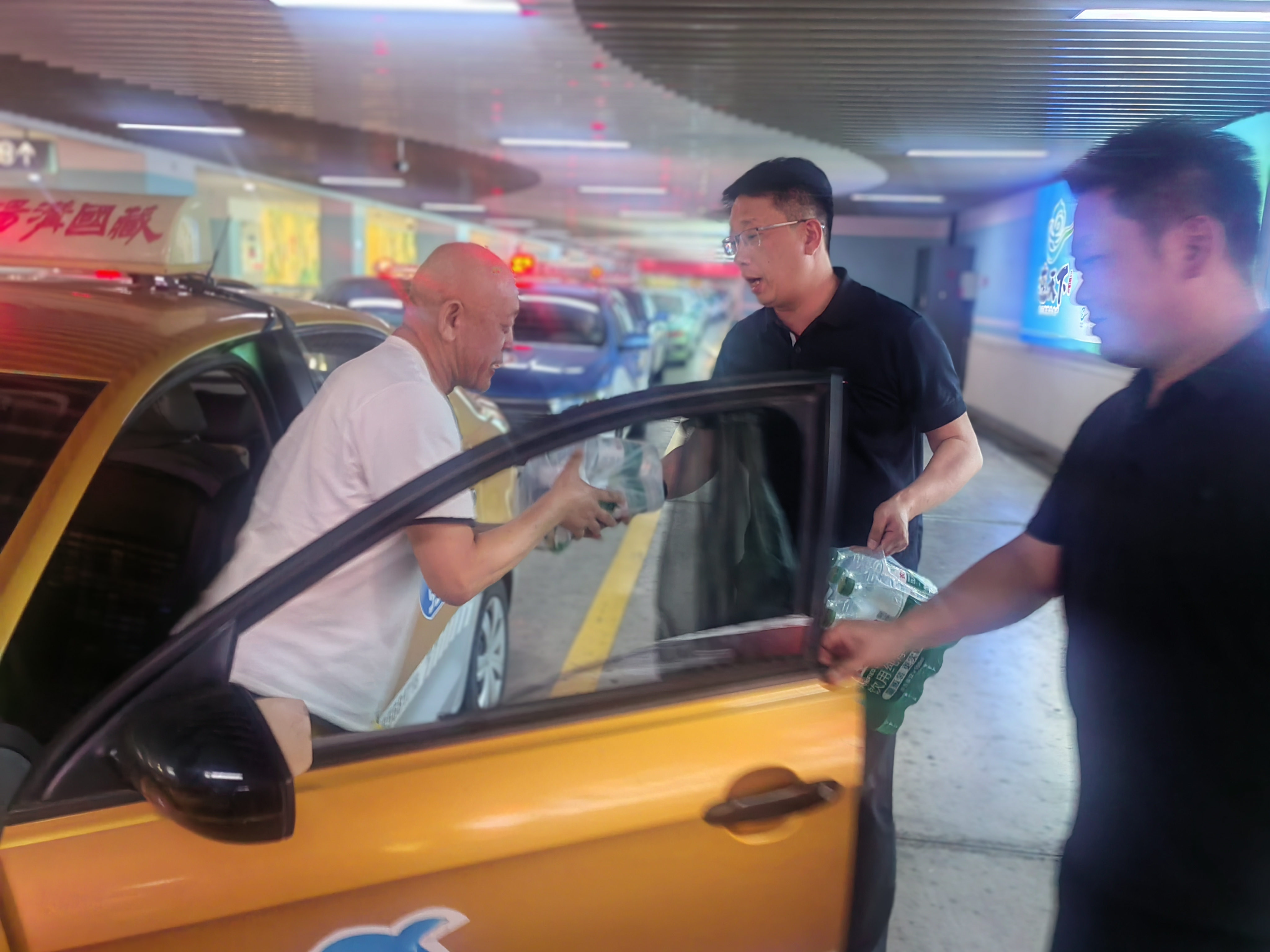 慰問(wèn)現(xiàn)場(chǎng),鞠仕亮與駕駛員們進(jìn)行了交流,詳細(xì)詢問(wèn)了駕駛員們的工作和生活情況,并殷切叮囑他們要做好防暑降溫措施,注意休息,保重身體。出租車駕駛員接過(guò)“送清涼”小組送上的防暑降溫用品連連致謝,并表示一定不辜負(fù)各級(jí)領(lǐng)導(dǎo)的殷切期望,在營(yíng)運(yùn)中遵章守法,規(guī)范運(yùn)營(yíng),安全駕駛,盡心盡責(zé)做好高鐵站的運(yùn)輸保障工作,為乘客們提供優(yōu)質(zhì)的服務(wù),為連云港市文明交通貢獻(xiàn)力量。在高鐵站出租車上客區(qū),“送清涼”小組還向高溫天氣下堅(jiān)守在場(chǎng)站執(zhí)勤的公司交通監(jiān)管人員送上了清涼防暑用品,對(duì)他們維持場(chǎng)站營(yíng)運(yùn)秩序的辛勤付出表示感謝和慰問(wèn)。