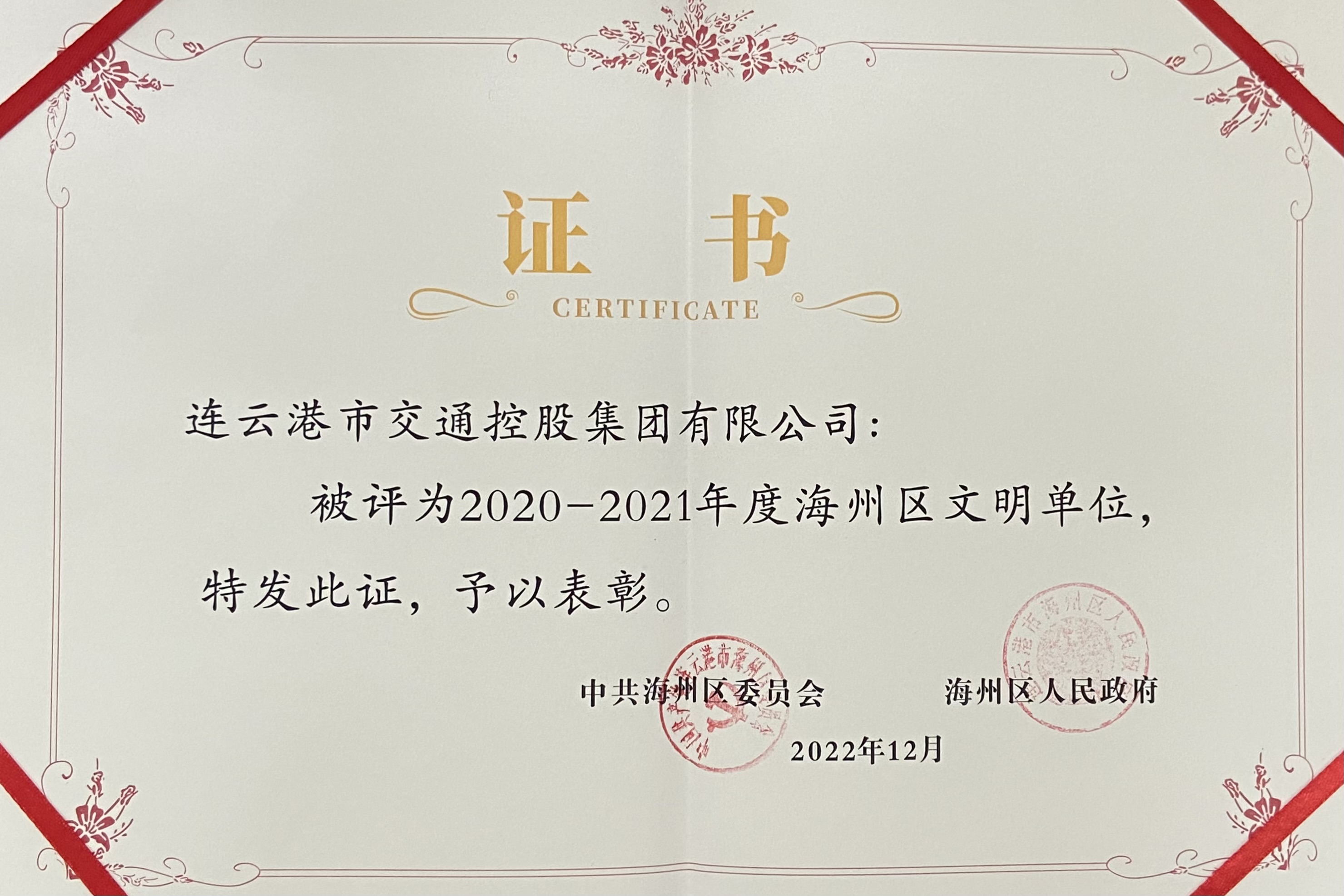 日前,中共海州區(qū)委、海州區(qū)人民政府授予以下集團及權(quán)屬單位2020-2021年度海州區(qū)文明單位榮譽稱號: