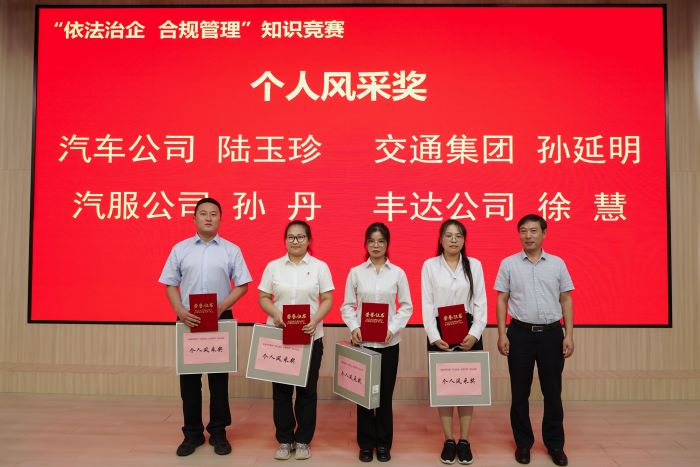 8月20日,汽服公司在交通控股集團(tuán)舉辦的“依法治企 合規(guī)管理”知識競賽中脫穎而出,以優(yōu)異的成績榮獲二等獎和個人風(fēng)采獎。此次競賽不僅展現(xiàn)了汽服公司強(qiáng)大的團(tuán)隊凝聚力和員工們的專業(yè)素養(yǎng),更彰顯了公司在依法治企、合規(guī)管理方面的堅定決心和顯著成效。