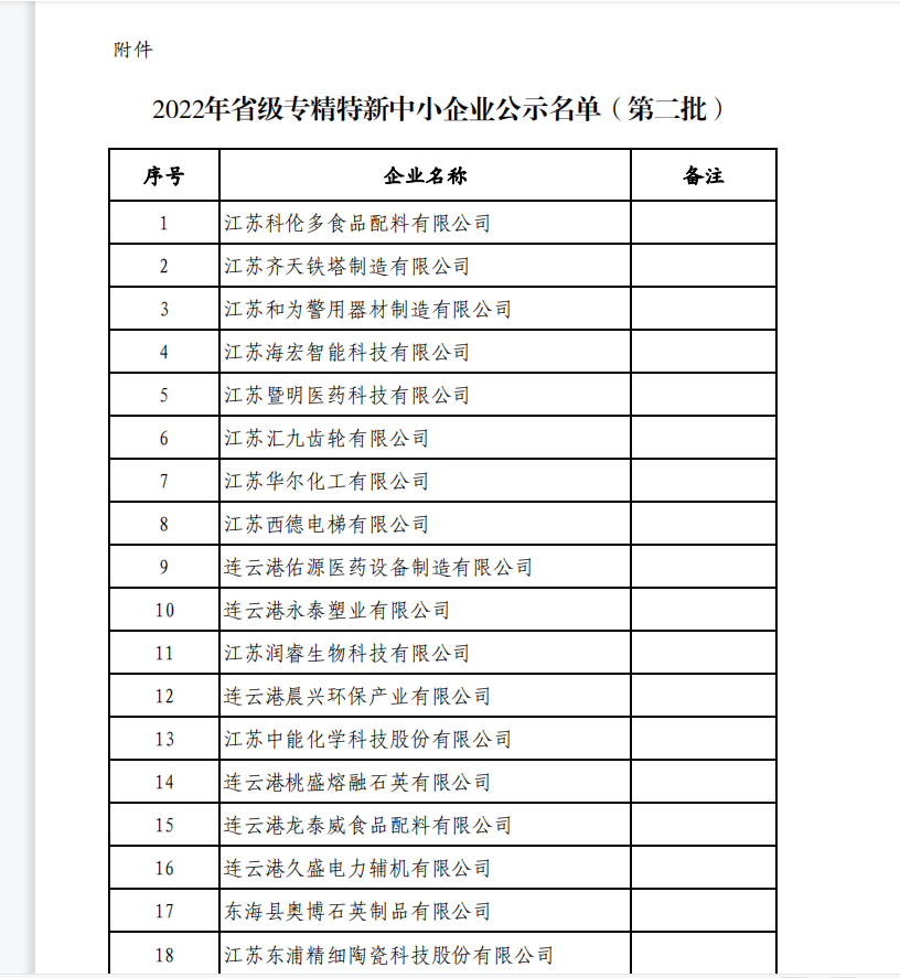 日前,江蘇省公布第二批2022年專精特新中小企業(yè)名單,江蘇海宏智能科技有限公司榜上有名,順利通過省級“專精特新”企業(yè)評定。