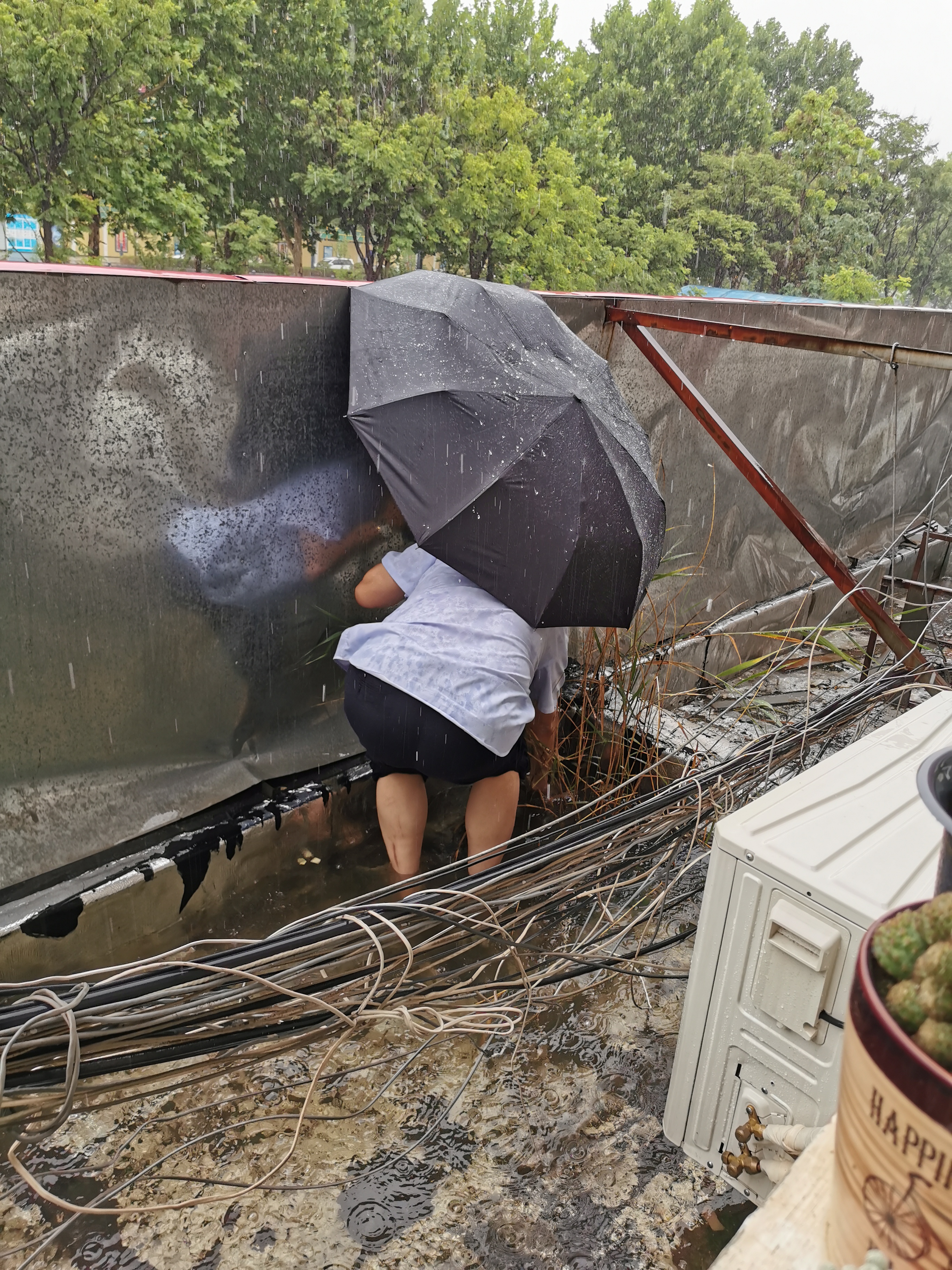7月14日,對(duì)影響院內(nèi)環(huán)境整潔的垃圾物進(jìn)行集中清理,有效解決了車棚內(nèi)垃圾無人清運(yùn)等問題,進(jìn)一步提升了物流集團(tuán)工作環(huán)境。7月16日,一場(chǎng)急雨襲卷港城,他們發(fā)現(xiàn)一樓屋檐積水嚴(yán)重、排水不暢,存在安全隱患。58歲的業(yè)務(wù)科科長(zhǎng)范正銀冒著急雨,在確保安全的前提下,從二樓窗戶爬上屋檐,用手一點(diǎn)一點(diǎn)清掏屋檐排水口雜物,確保了排水通暢、消除了安全隱患。