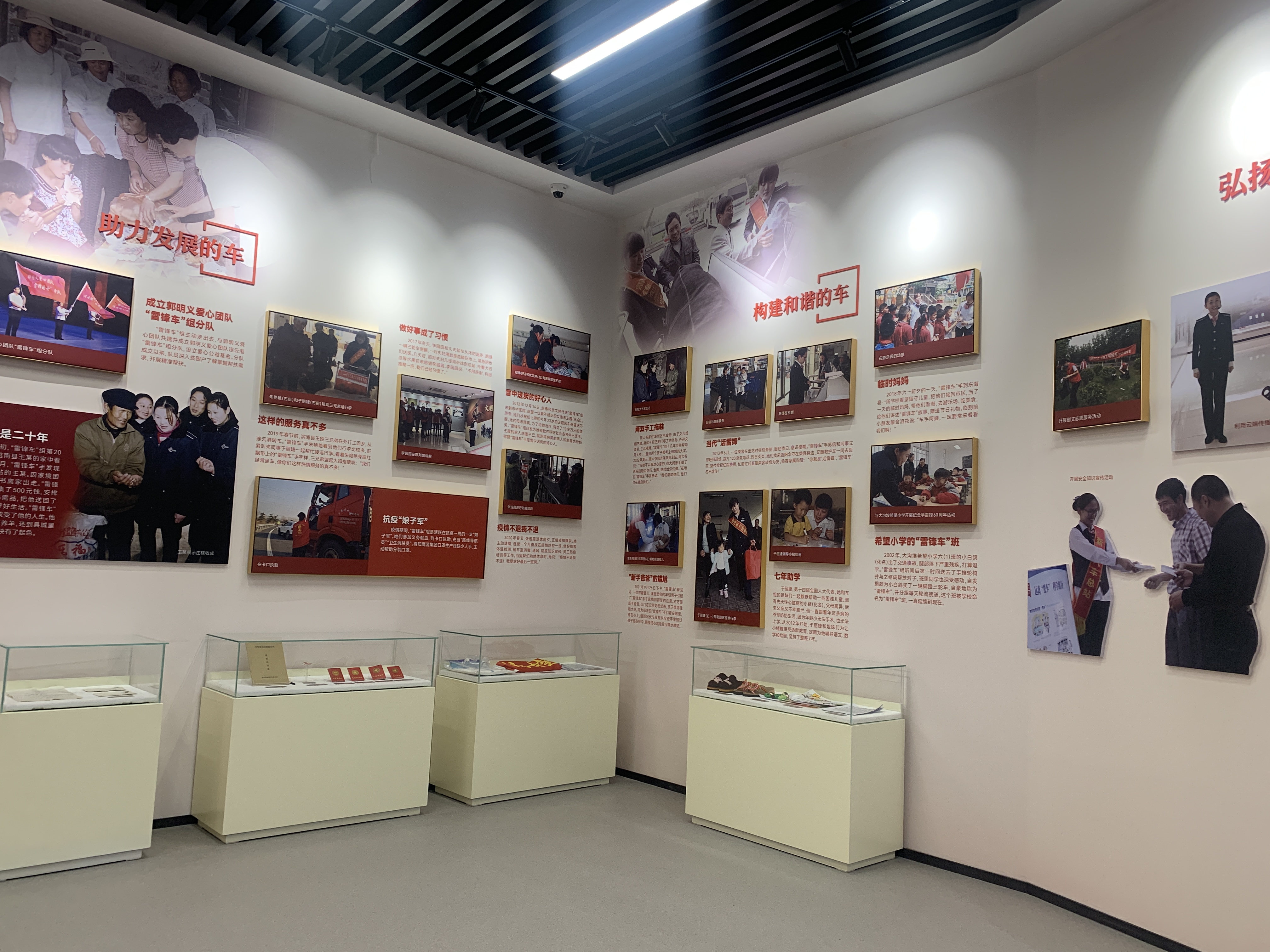 “雷鋒車”事跡陳列館位于江蘇省連云港市新浦汽車總站客運(yùn)站二層,面積由原來的300平米增至614平米,展覽線路長度約230米。整個(gè)展館分為四個(gè)部分:在學(xué)雷鋒大潮中誕生、在改革開放中發(fā)展、在新時(shí)代中奮進(jìn)、在傳承弘揚(yáng)中廣大。根據(jù)時(shí)代變遷中“雷鋒車”組的成長脈絡(luò)和感人故事,通過標(biāo)志性圖片、數(shù)據(jù)圖標(biāo)、音像視頻、實(shí)物文物和場景造型附以說明文字等多種方式,全方位立體展示“雷鋒車”組60年間全心全意為人民服務(wù)的先進(jìn)事跡,讓參觀者擁有更加直觀的觀展體驗(yàn)。