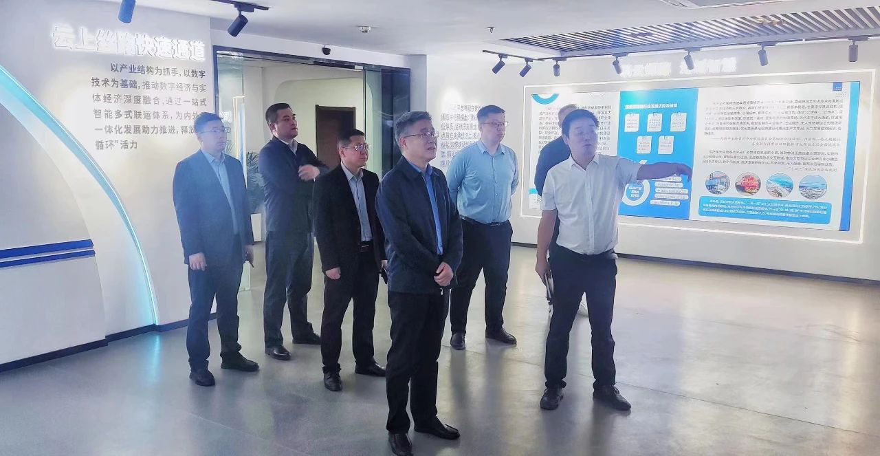 仲偉濤一行參觀了云上絲路數字物流展廳,詳細聽取數字物流平臺業(yè)務模塊和生態(tài)端建設,數字金融、智慧物流、汽車后市場等業(yè)務推進情況,并對數字物流產業(yè)基地建設情況進行了現場調度。