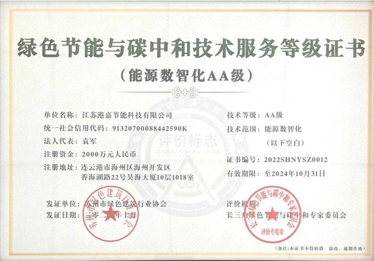 頒證儀式上,上海市節(jié)能工程技術(shù)協(xié)會副會長兼秘書長陳宏為江蘇港嘉節(jié)能科技有限公司頒發(fā)“綠色節(jié)能與碳中和技術(shù)服務(wù)等級證書”。